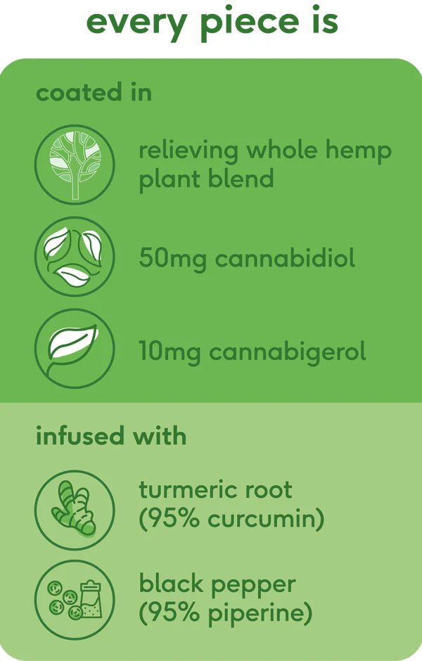 - 50mg CBD & 10mg CBG With Each Piece